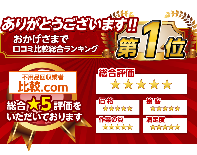 一部品目を除き、買取した商品をリユース(再利用)することで、処分費用を大幅削減!お客様に安価なサービス提供が可能になっています。