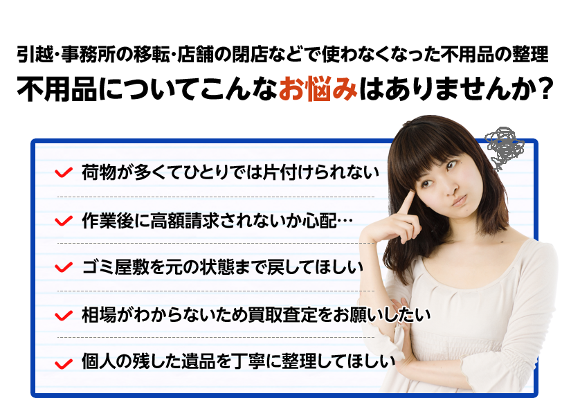 品目の種類や量、現場の状況などにより作業費および買取価格が変動します。お見積もりを提示し、お客様にご納得いただいた上で、ご都合の良い日時を決定いたします。