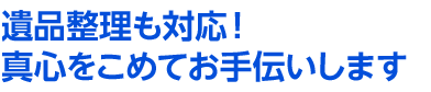 遺品整理から仏具・神具のお焚き上げまで、ご遺族様に代わり処理、供養させて頂いております。故人様が残された大切な品々と心を込めて整理いたします。